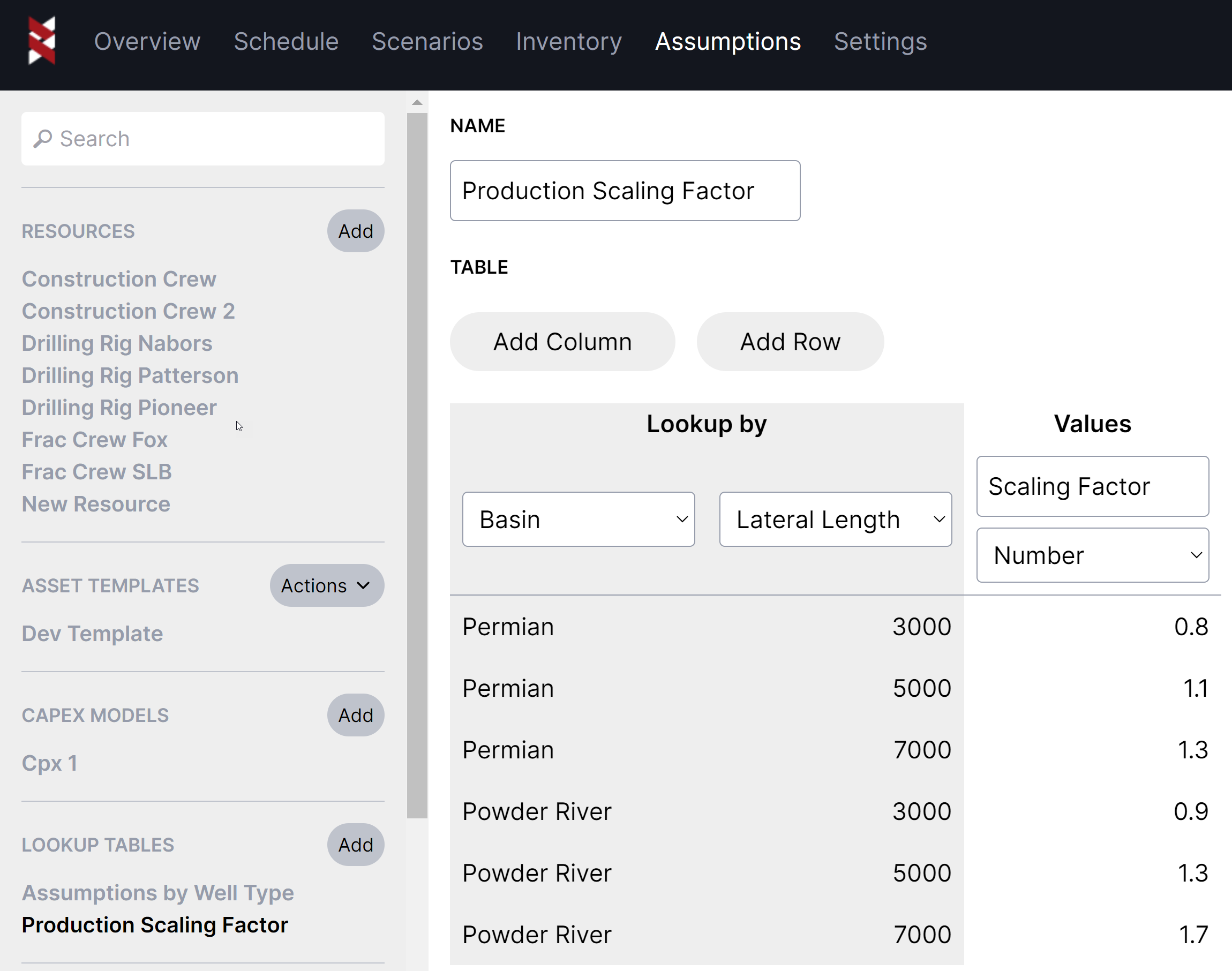 Combining a calculated field and a lookup table, you can apply a scaling factor based on a well's attributes, Basin and Lateral Length