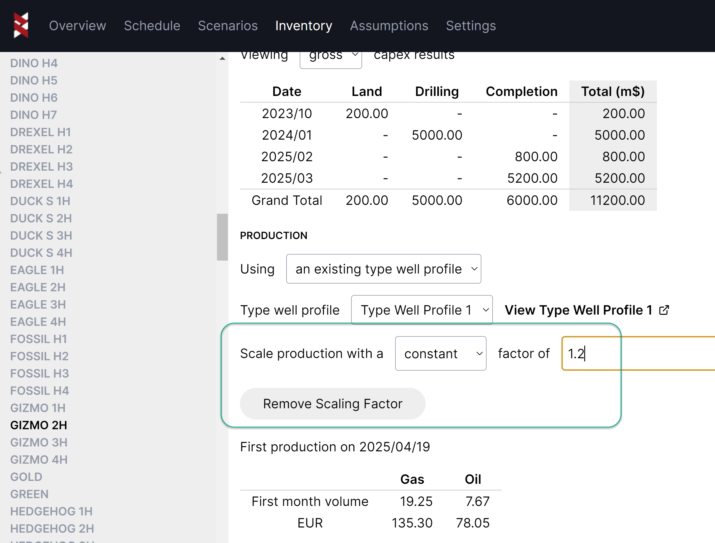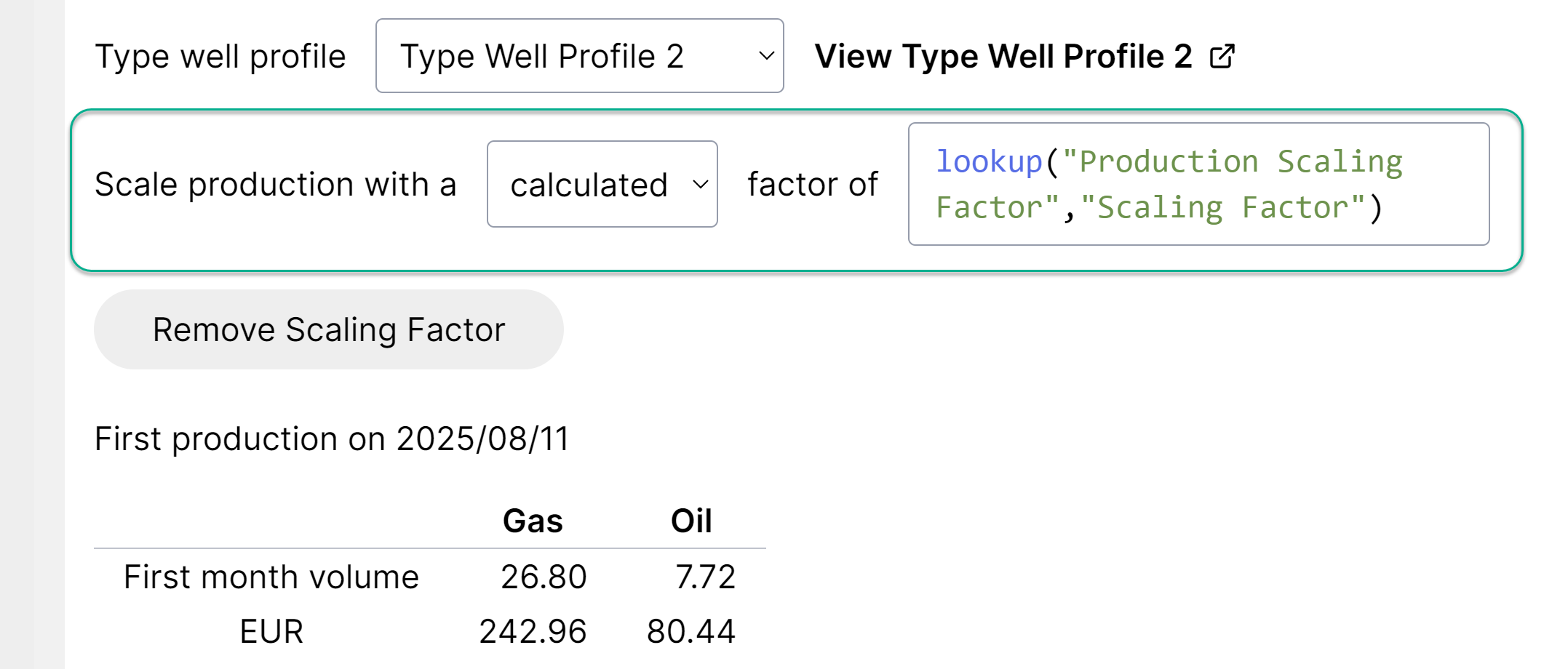 You can apply scaling factors in the inventory section to account for things like various lateral lengths. This can help you keep a more manageable list of Type Well Profiles, and based on specific well parameters.