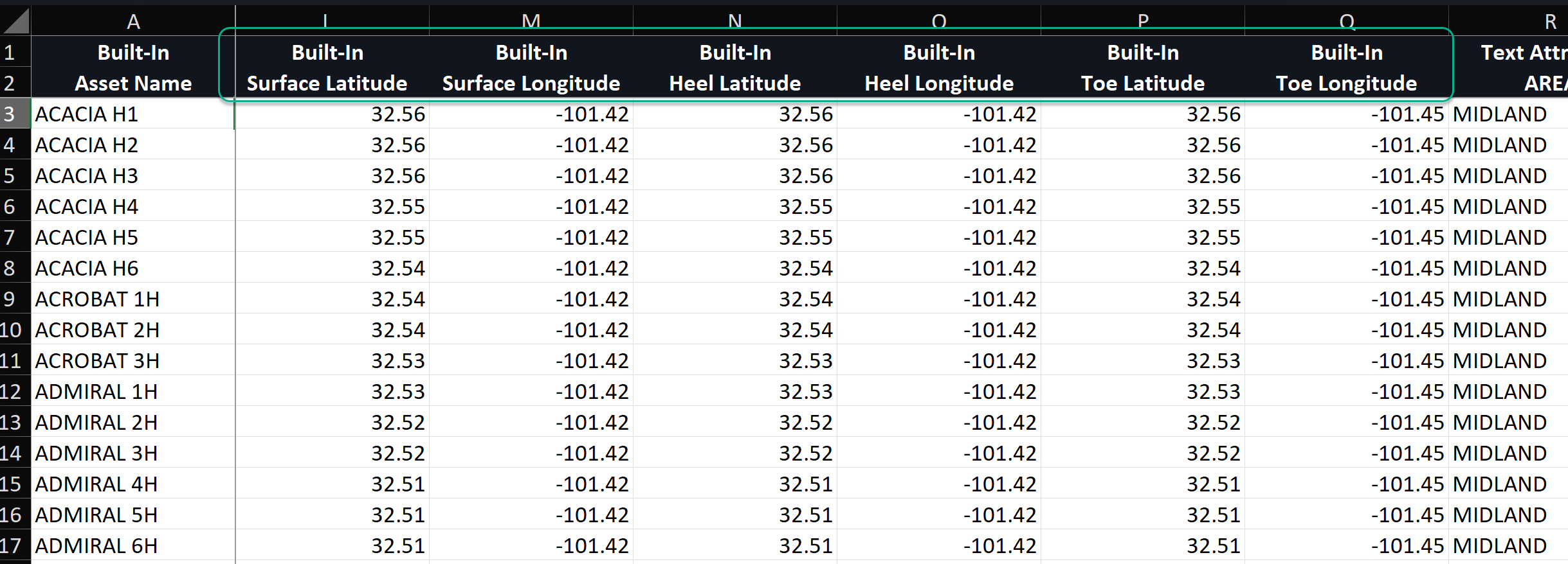 Well coordinates (WGS 84) can be imported using the header import or manually input in the Inventory