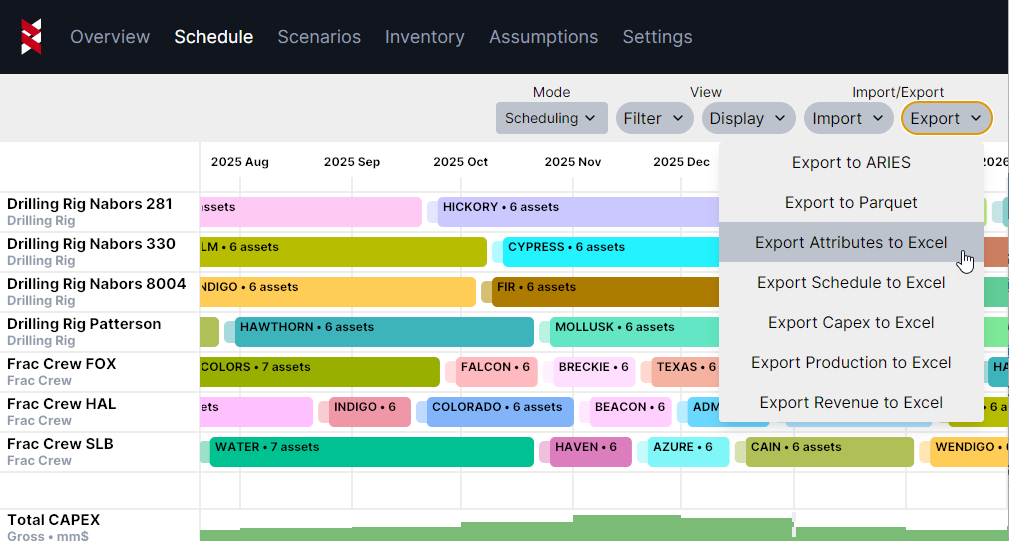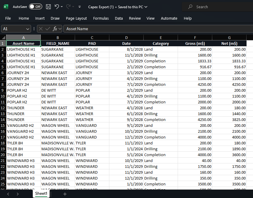 In addition to direct integrations, we make it easy to access data via Excel exports. All data is exported at the asset (well) level so that you can slice and dice as-needed in your BI tool of choice.