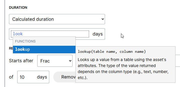 - To reference table data, start typing "lookup"